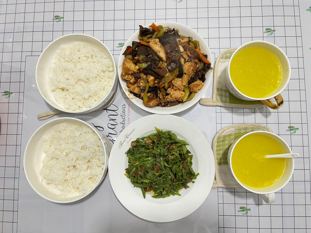 米饭🍚+五花肉炒豆角+家常豆腐+南瓜🎃糊