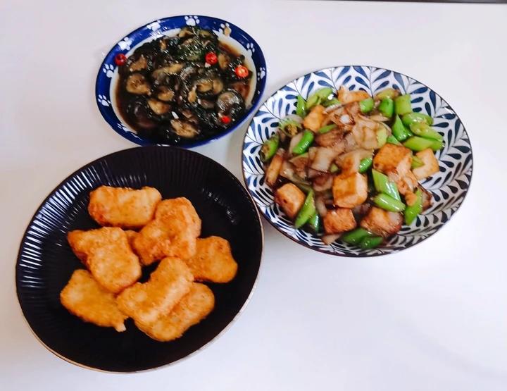 炸鸡块和杭椒爆豆腐