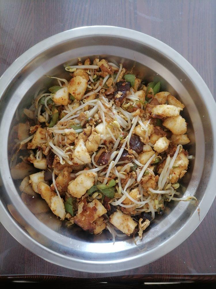 加了一些豆芽,炒馒头真的很好吃!