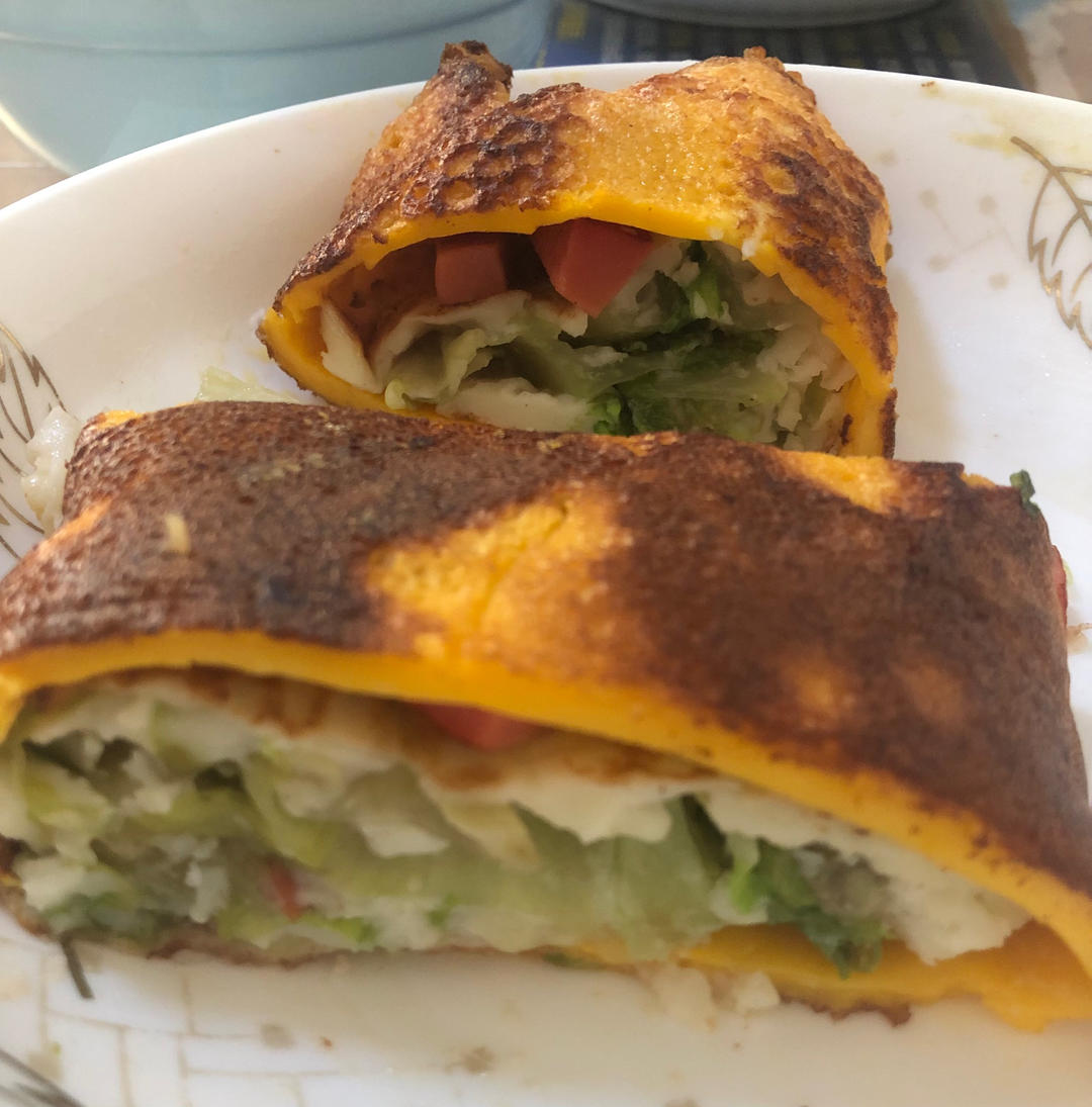 为了满足一家三口的午餐口粮,多放了点生菜还加了火...