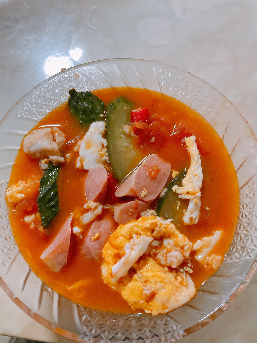 鱼我没有腌,还加了鸡蛋,肠仔,青瓜,小米辣,没有放芋丝,真的超级好喝
