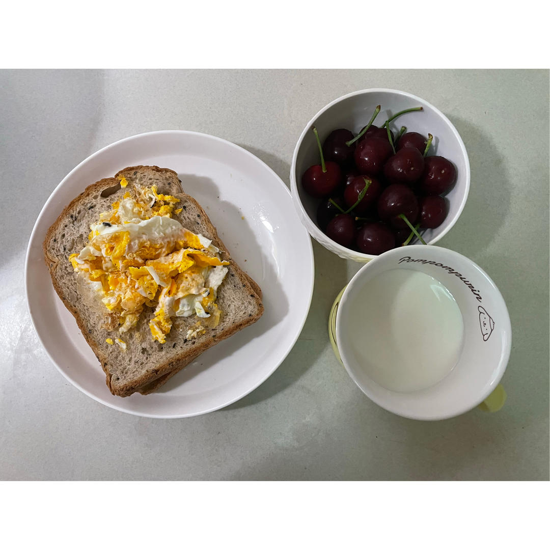 牛奶 鸡蛋 巴黎贝甜谷物面包 樱桃