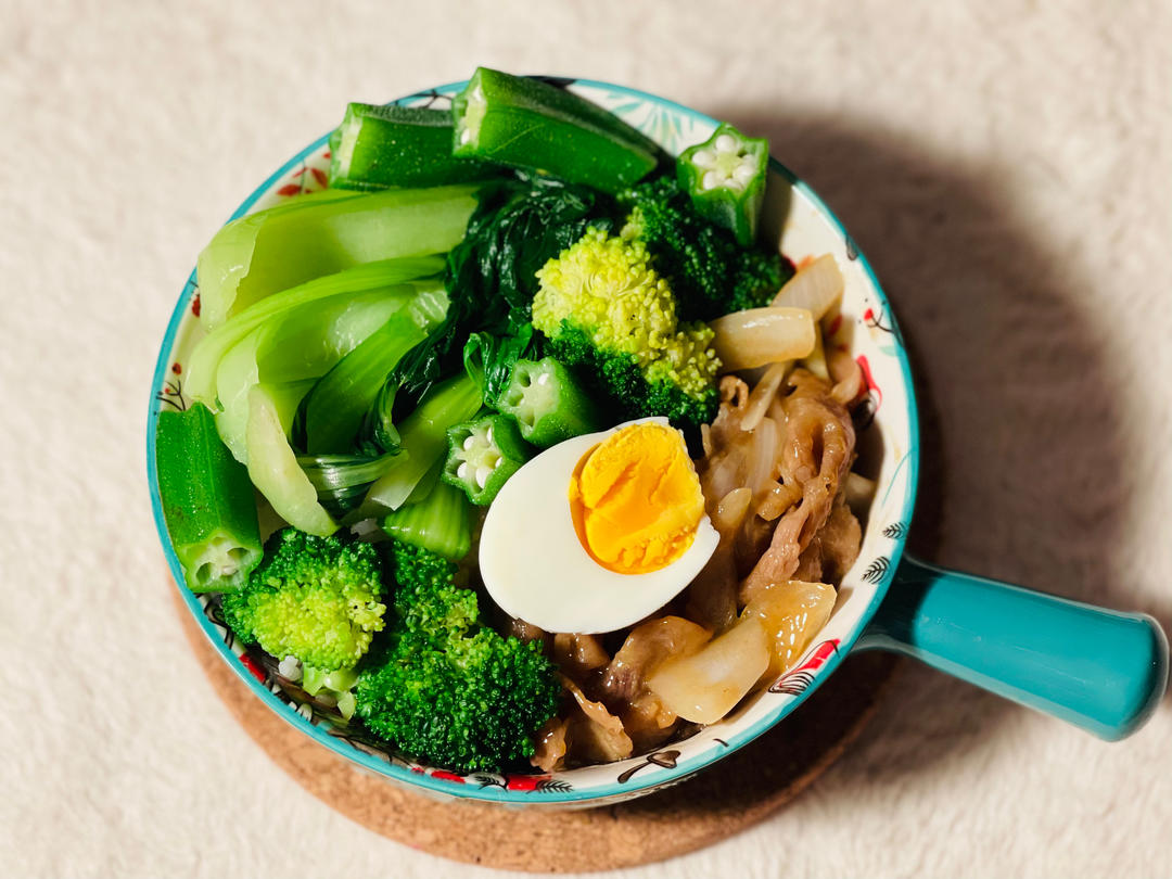 西兰花15秒、上海青、秋葵焯水,配菜随意加