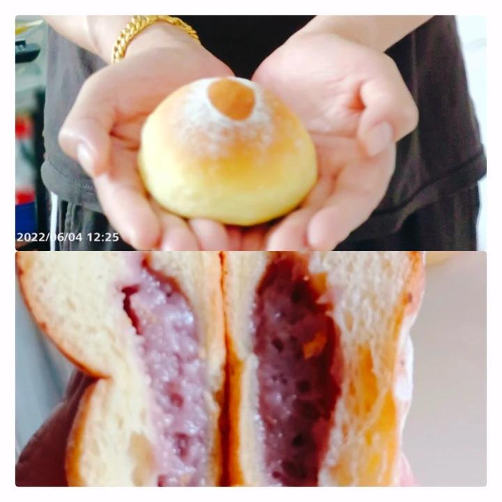 第一次用这个阳极模具,怕沾,抹了黄油。撒了面粉。出来形状还可以,天气热了发酵快。芋泥馅包的太多了,肿的好高。配方很赞,大...