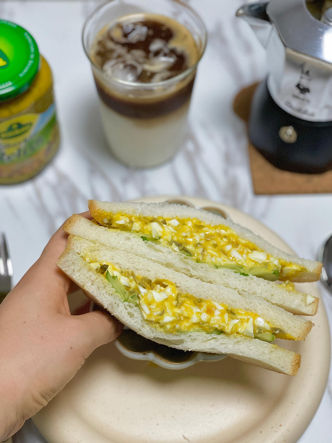 冠利芥末酸黄瓜鸡蛋旱黄瓜三明治x冰拿铁