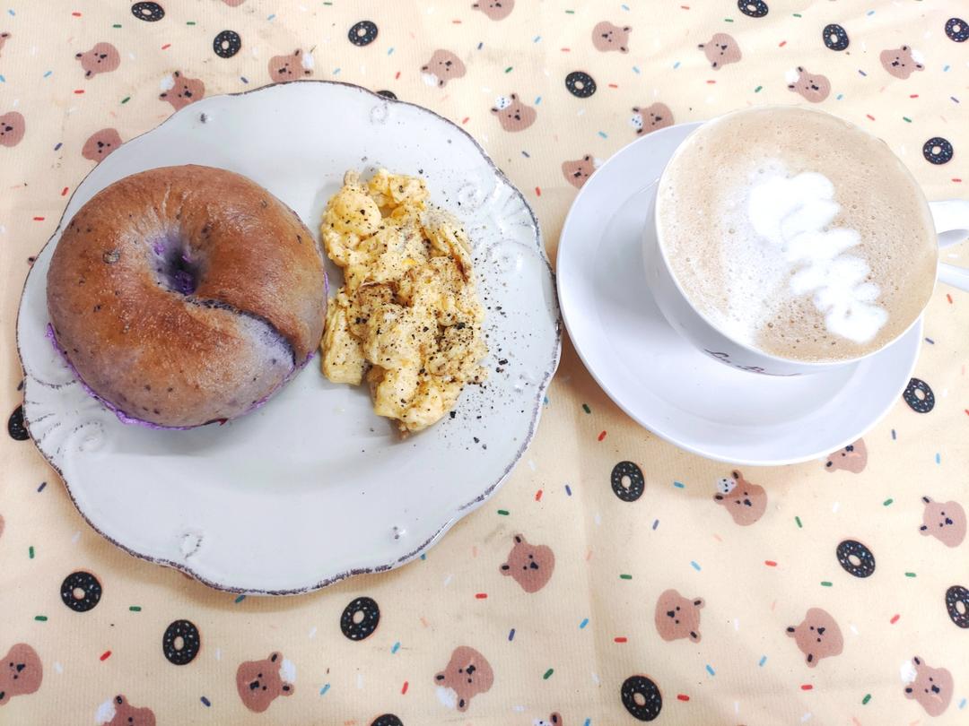女儿昨晚吃了大半个蓝莓奶酪贝果,早上吃了半个。