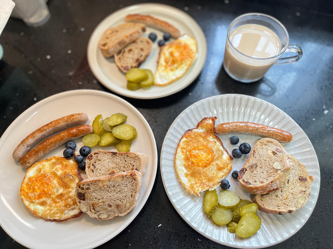 全麦欧包,煎蛋,烤肠,酸黄瓜