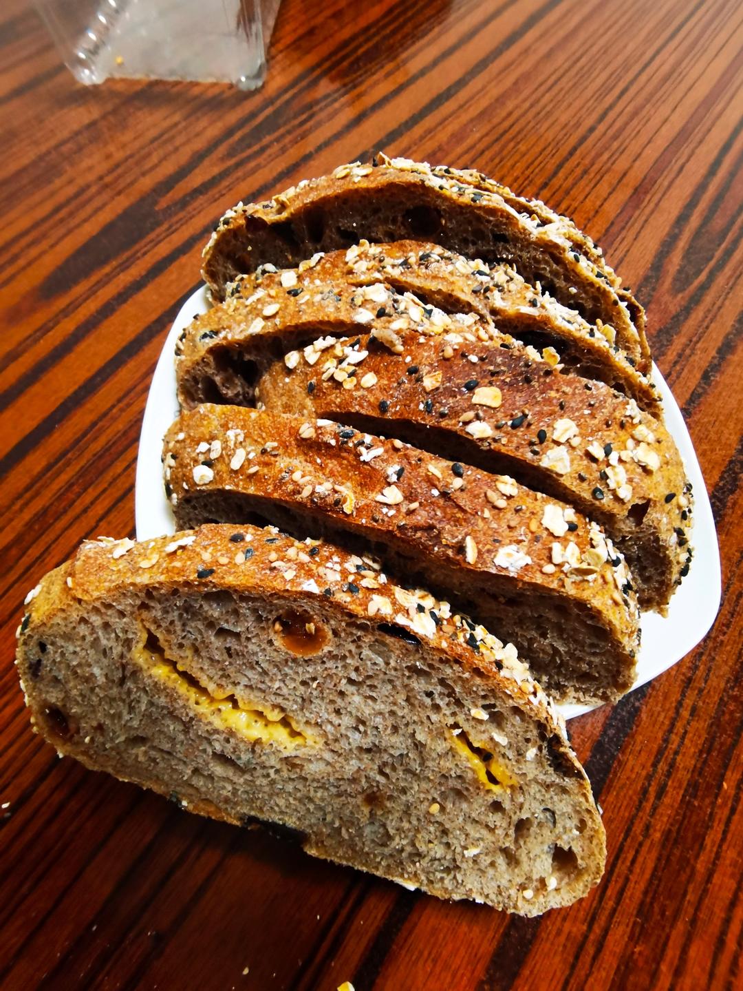 没有干酪,里面放的芝士片,就是一般欧包的感觉,个头真心不小,切完准备冷冻起来慢慢吃😜