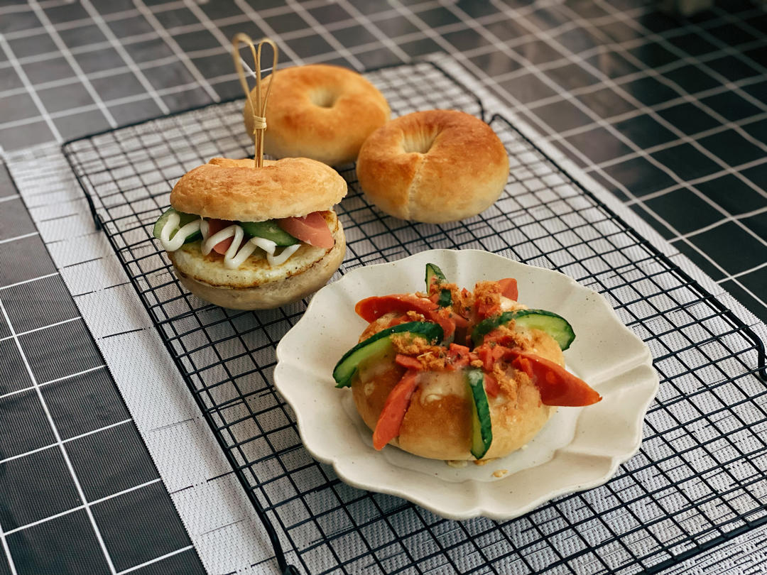 🥯 第一次做贝果,味道不错,口感有韧劲,喜欢😘