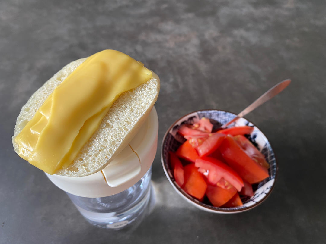 烤馒头片,切番茄。