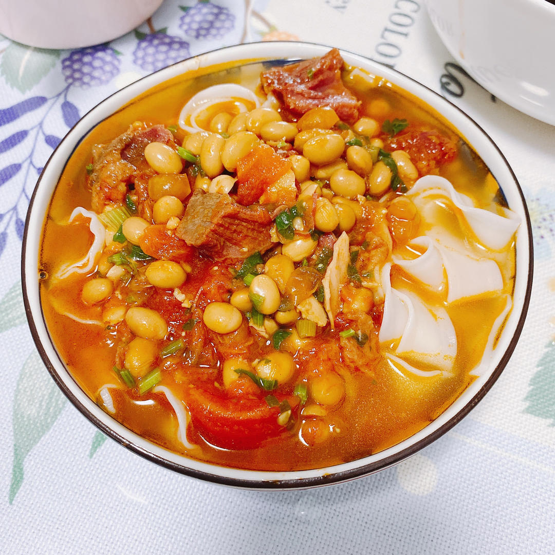 2盒牛肉罐头+1罐茄汁黄豆罐头🥫+2个西红柿