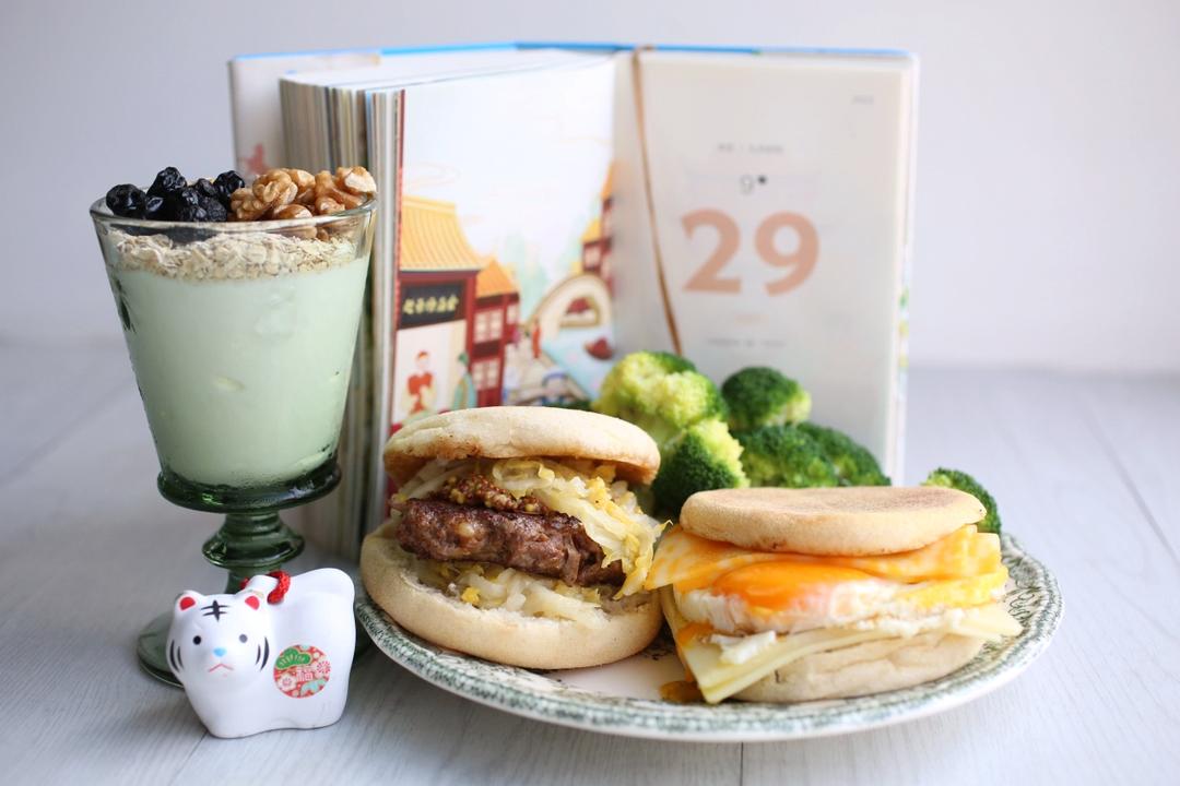 2022/9/29九月初四:牛肉酸菜麦满分/芝士蛋麦满分/西蓝花/燕麦果干酸奶