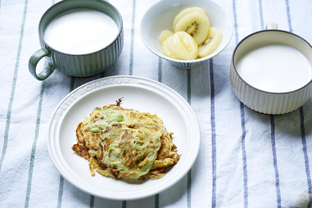 周四,毛毛雨。丝瓜蛋饼➕牛奶