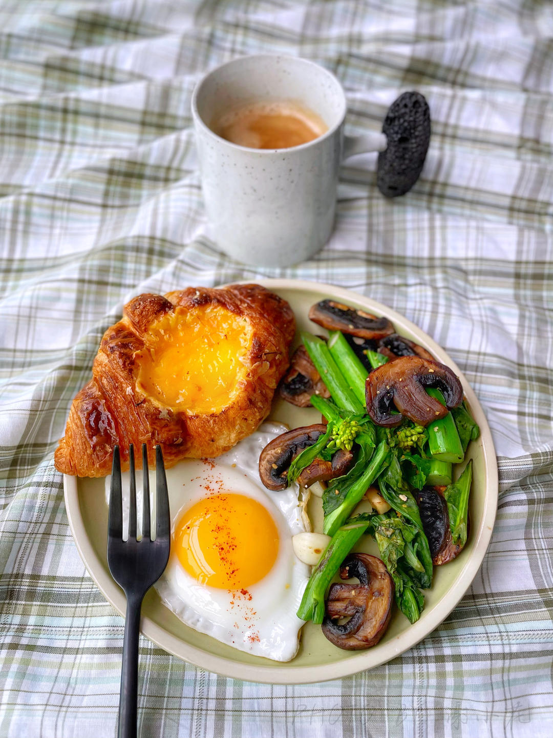 脆皮鸡蛋+佛卡夏面包,好好吃早饭