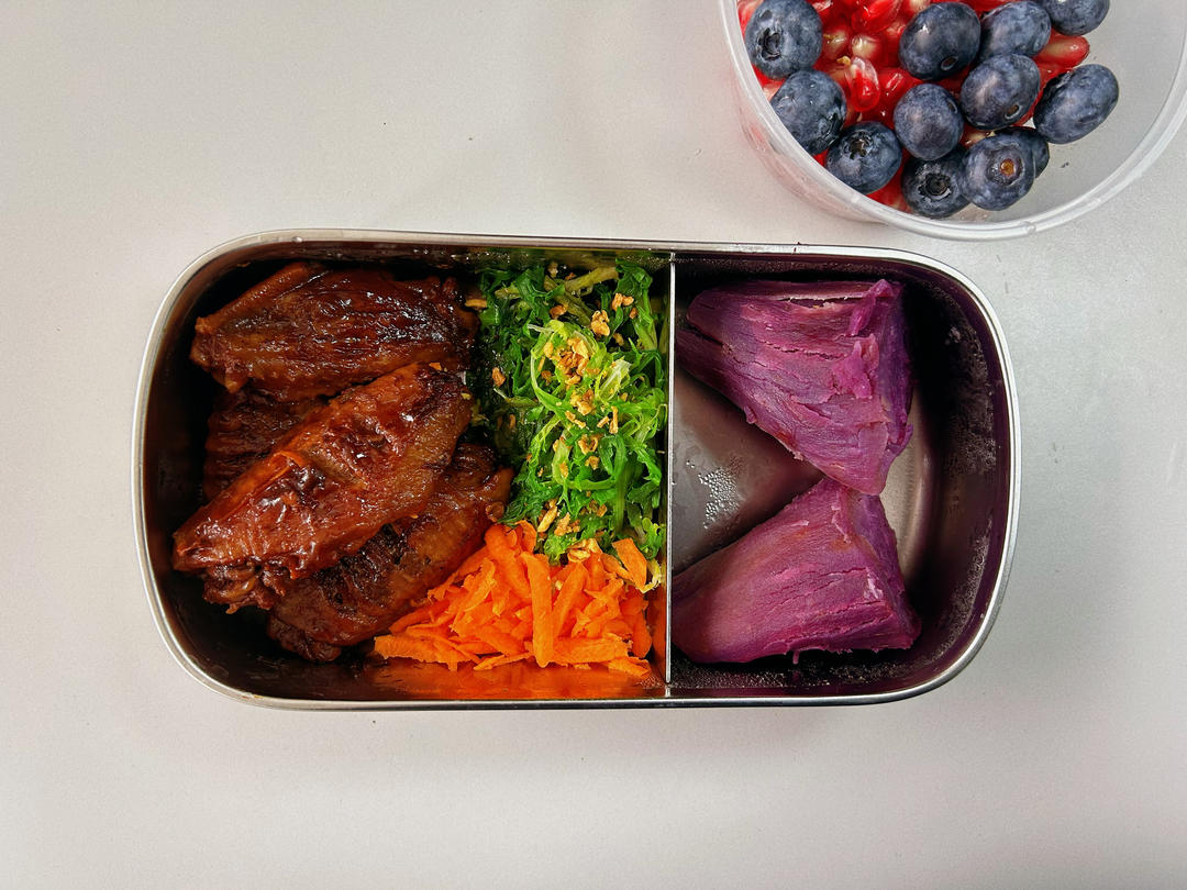 练后餐,红烧鸡翅苦苣胡萝卜
