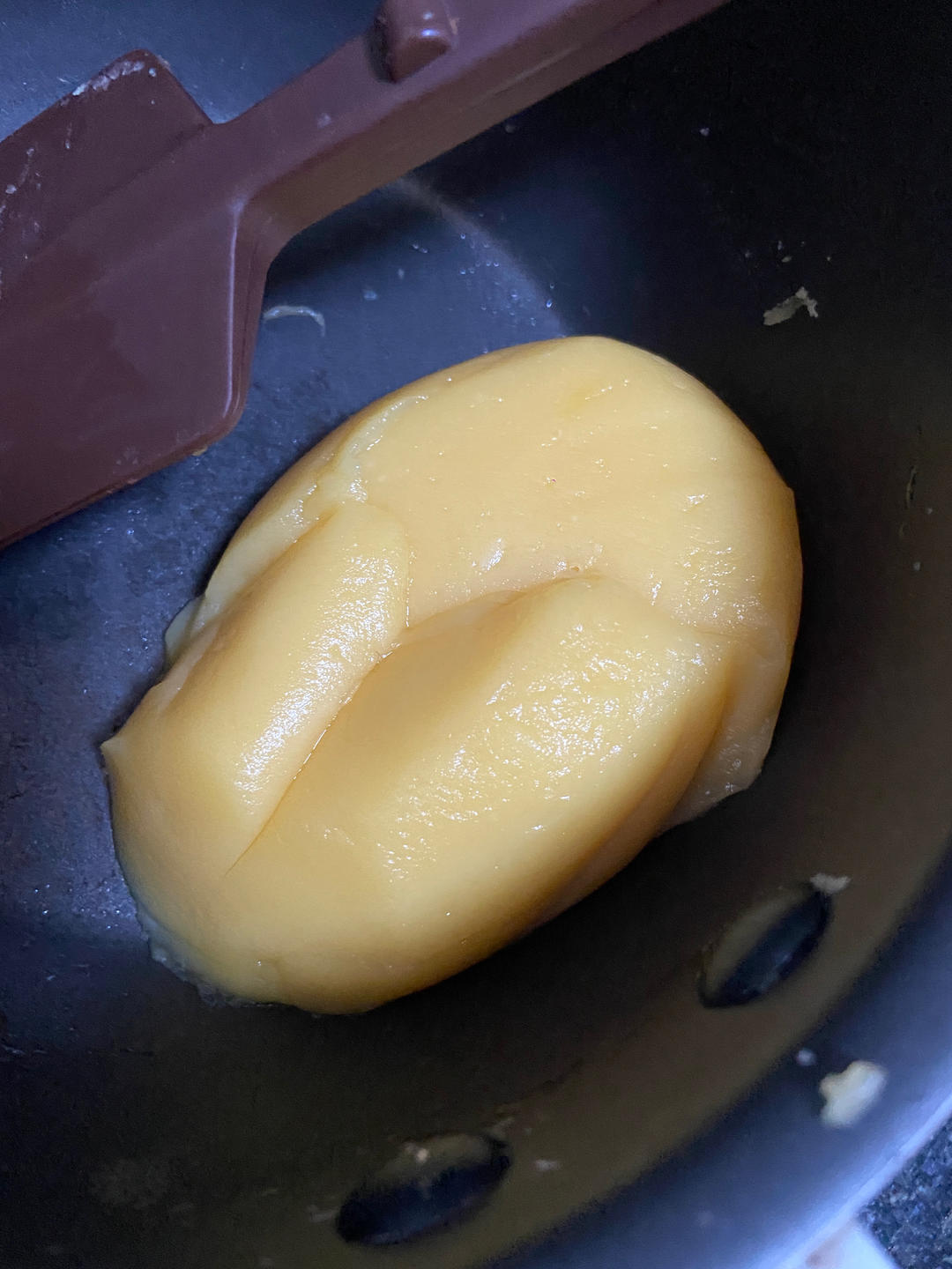 澄粉用的玉米淀粉,只放了三分之二的糖,对我来说够甜了,香甜。一半的配方够做四个小的奶黄包