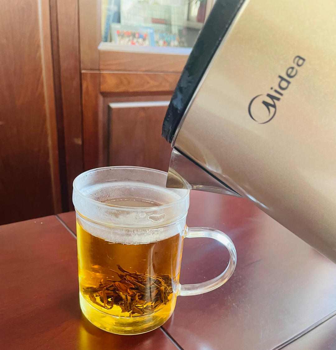 今天值班,办公室里先沏杯茶☕️哈哈边办公室的烧水壶都是美的的,美的厨电真的是已融入到我生活的每一天#早餐•2022年11...