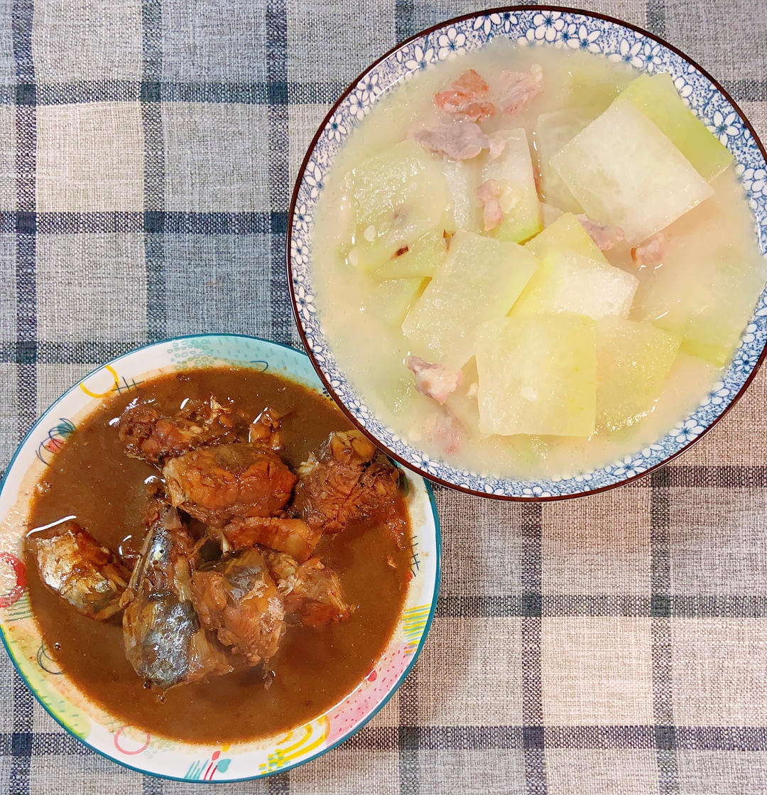 酱焖鲜鲅鱼,奶汤冬瓜,开饭。