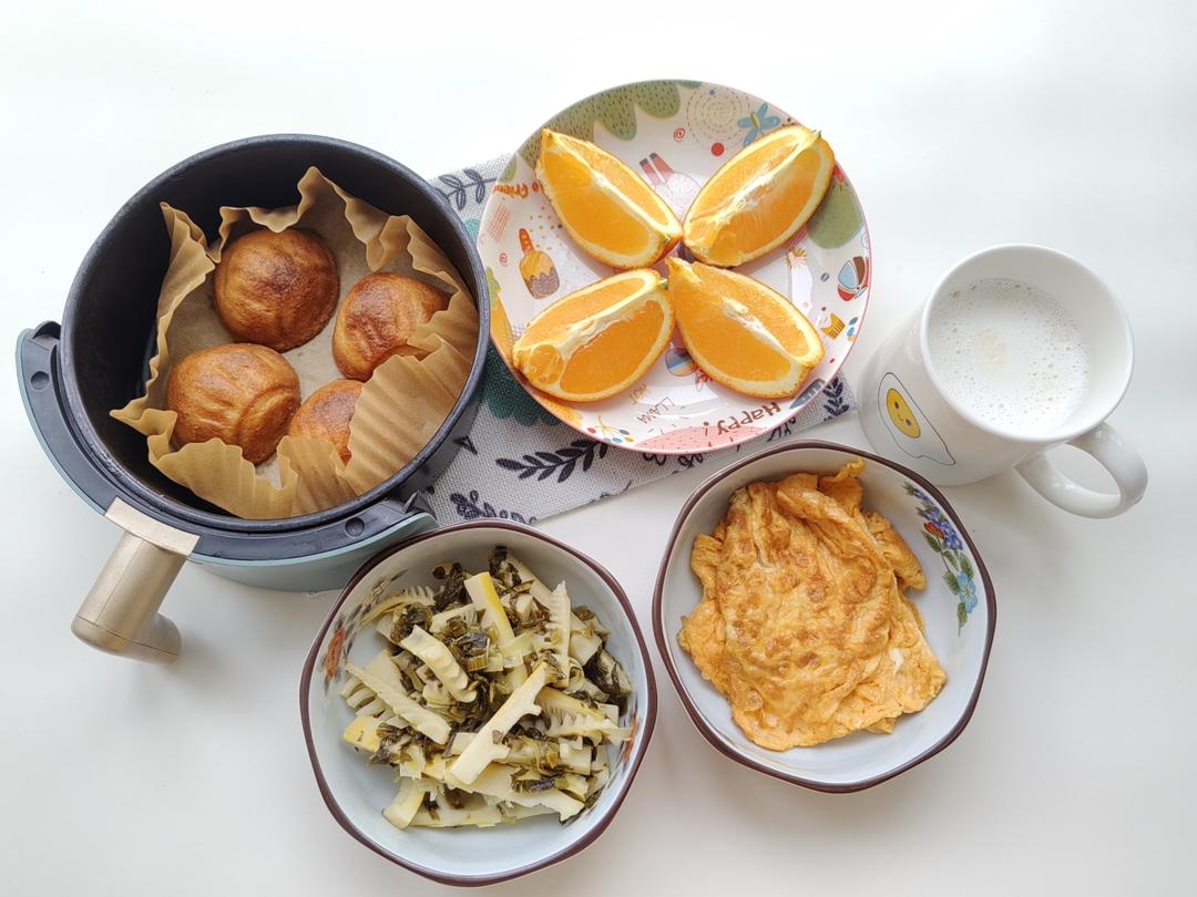 今日早餐~柠檬🍋酸奶风味酥松小贝(买的),沃柑,白煮蛋...