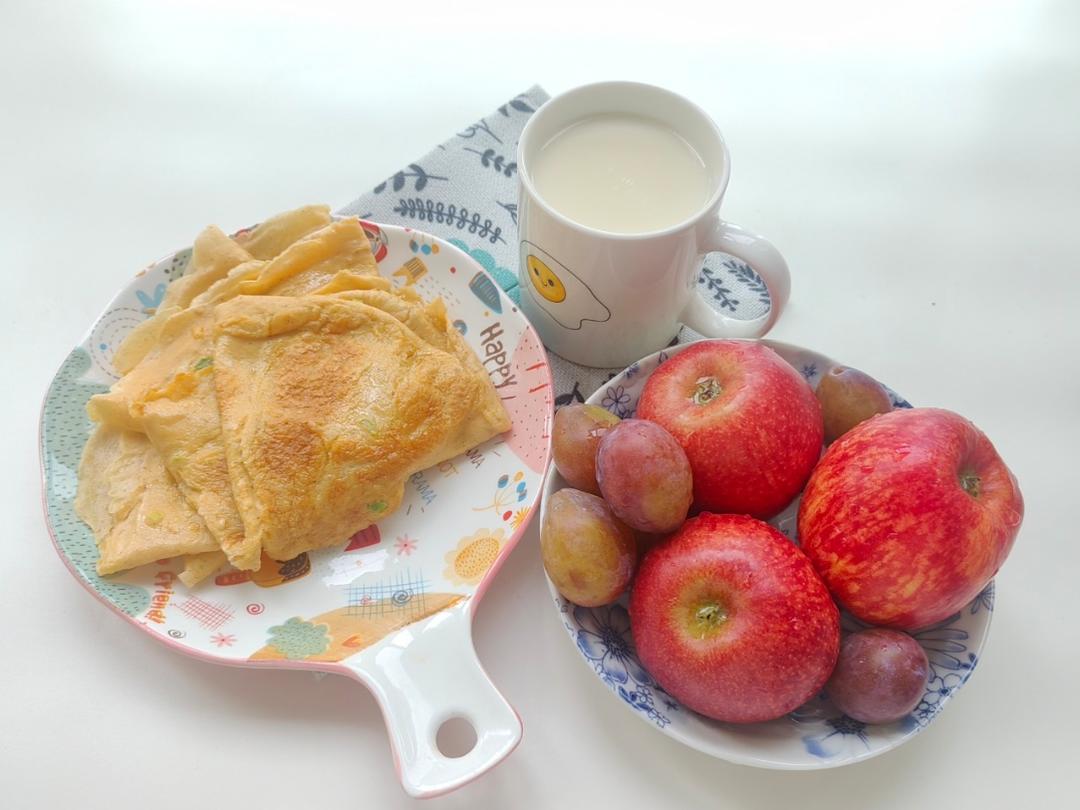 四月打卡第六天~鸡蛋水饼,苹果🍎西梅,牛奶。图五至图九是凑图,抖音上截图的~春天来了,吃...