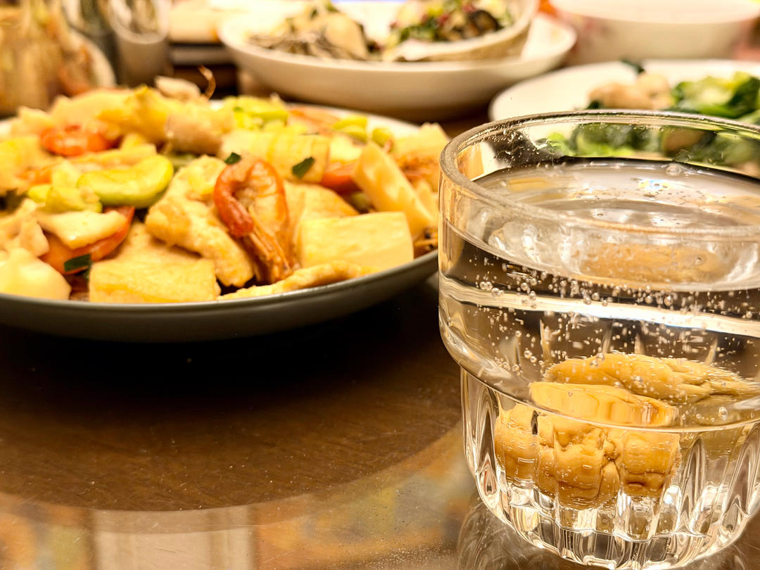 喝完的梅子酒剩的梅子再泡个气泡水😃一日三餐