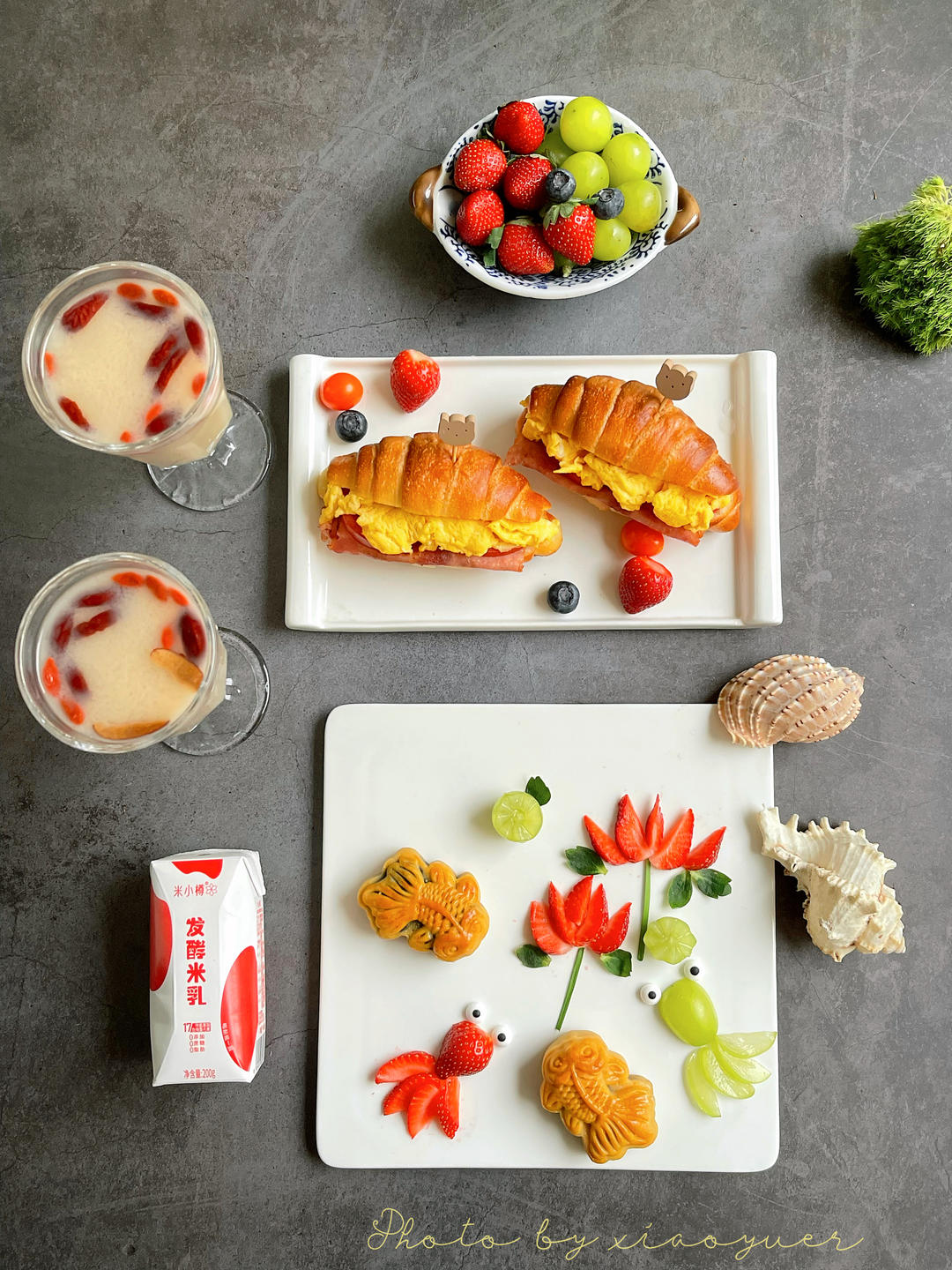周三早餐:滑蛋火锅海盐卷、荷花金鱼月饼盘、热米乳奶茶、水果。等风来,不如追风去。早安[...
