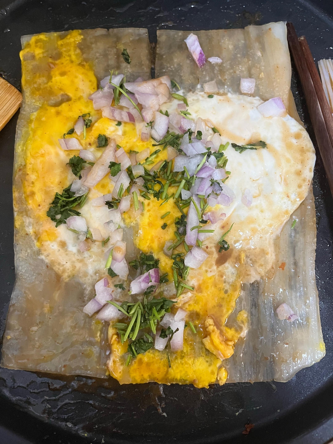 鸡蛋龙须面🍜+皮冻🥓+紫甘蓝🥬+橙子🍊