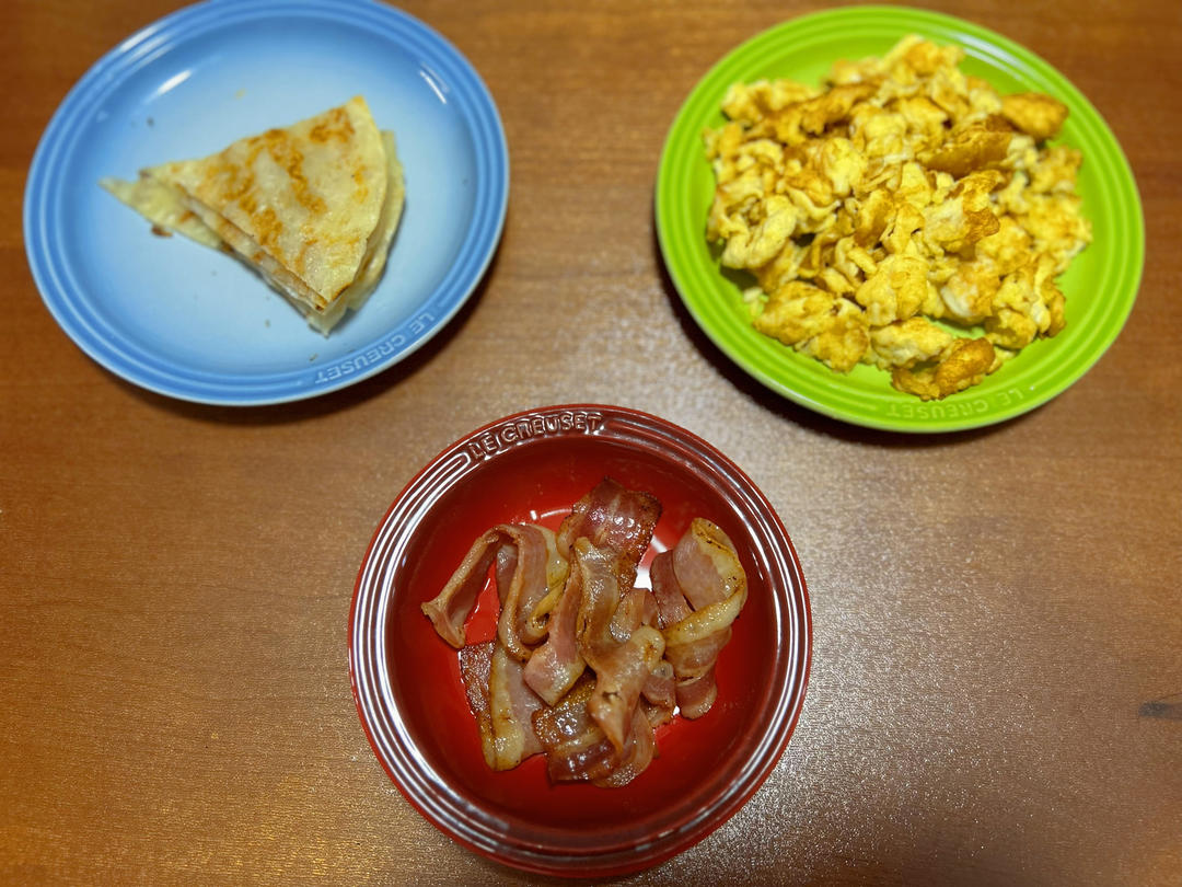煎培根、手抓饼、炒鹅蛋,老公🐑了,在单位自己照顾自己,我们在家自己照顾自己
