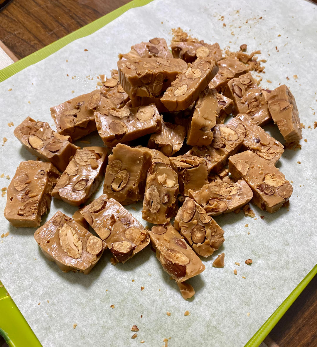 自己做着玩儿,糖90克,其他方子量减半。160度关火,曲奇磨具凑合了一下。生杏仁180度7分钟,150度8分钟。(下次试...