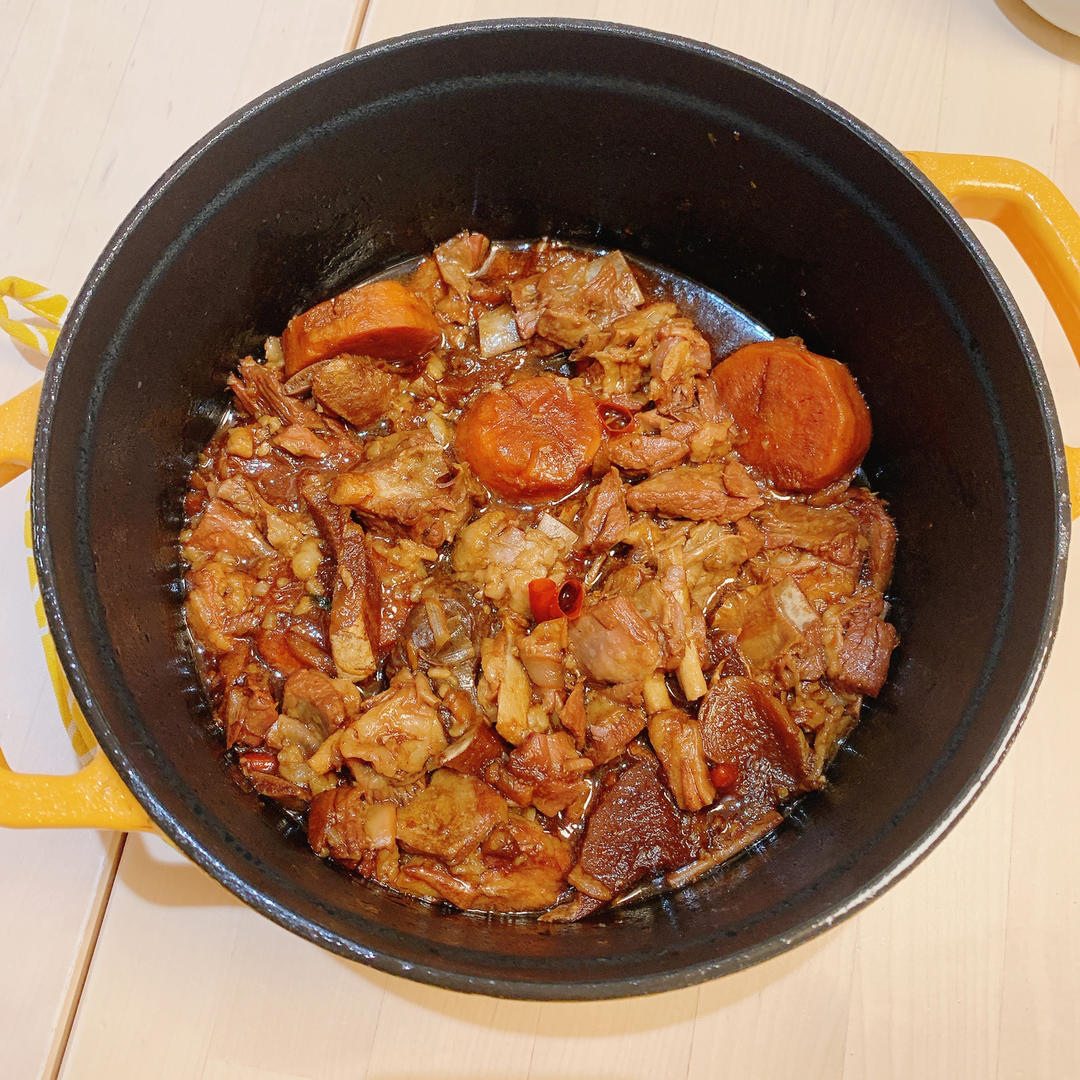 买了一斤羊排块,两个人居然不够吃,味道非常浓郁。胡萝卜后放的,很入味儿...