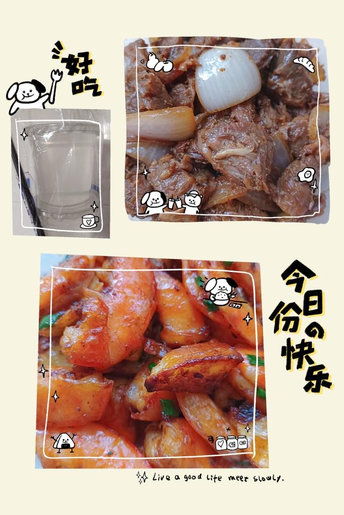 是午饭(大盘鸡配裤带面)和给儿子和小伙伴带的晚饭(咖喱鸡排饭),没有临近周末的那种期盼...