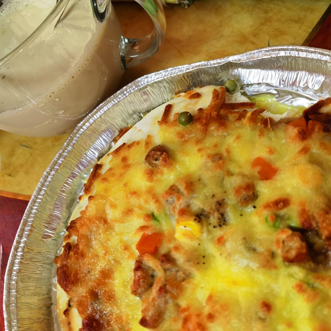 分量减半做了6个 ,4个放了榴莲肉,2个原味,都加了层马苏里拉奶酪芝士,原味感觉水分有点多...