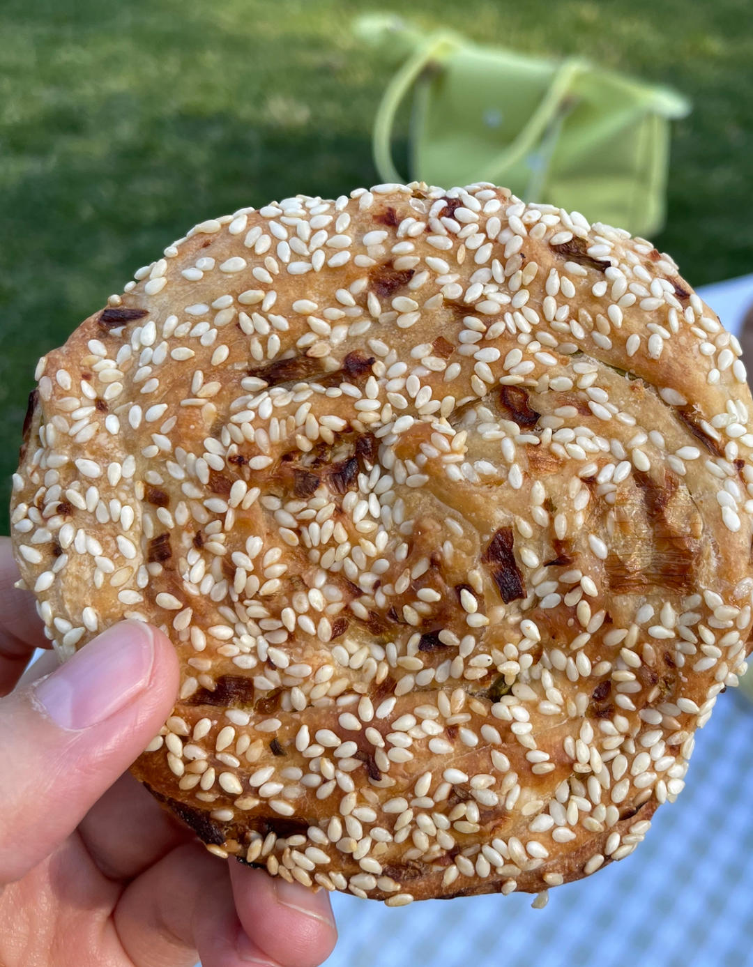有很多芝麻的葱花饼