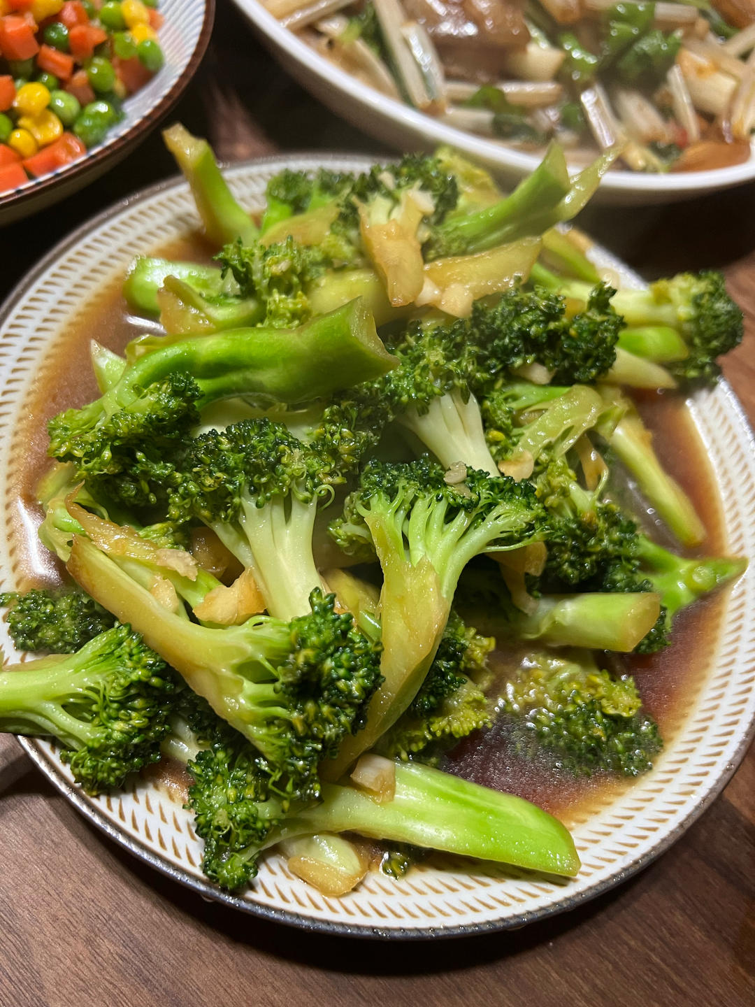 照烧肥牛、蒜蓉甜豆、土豆烧鲍鱼。
