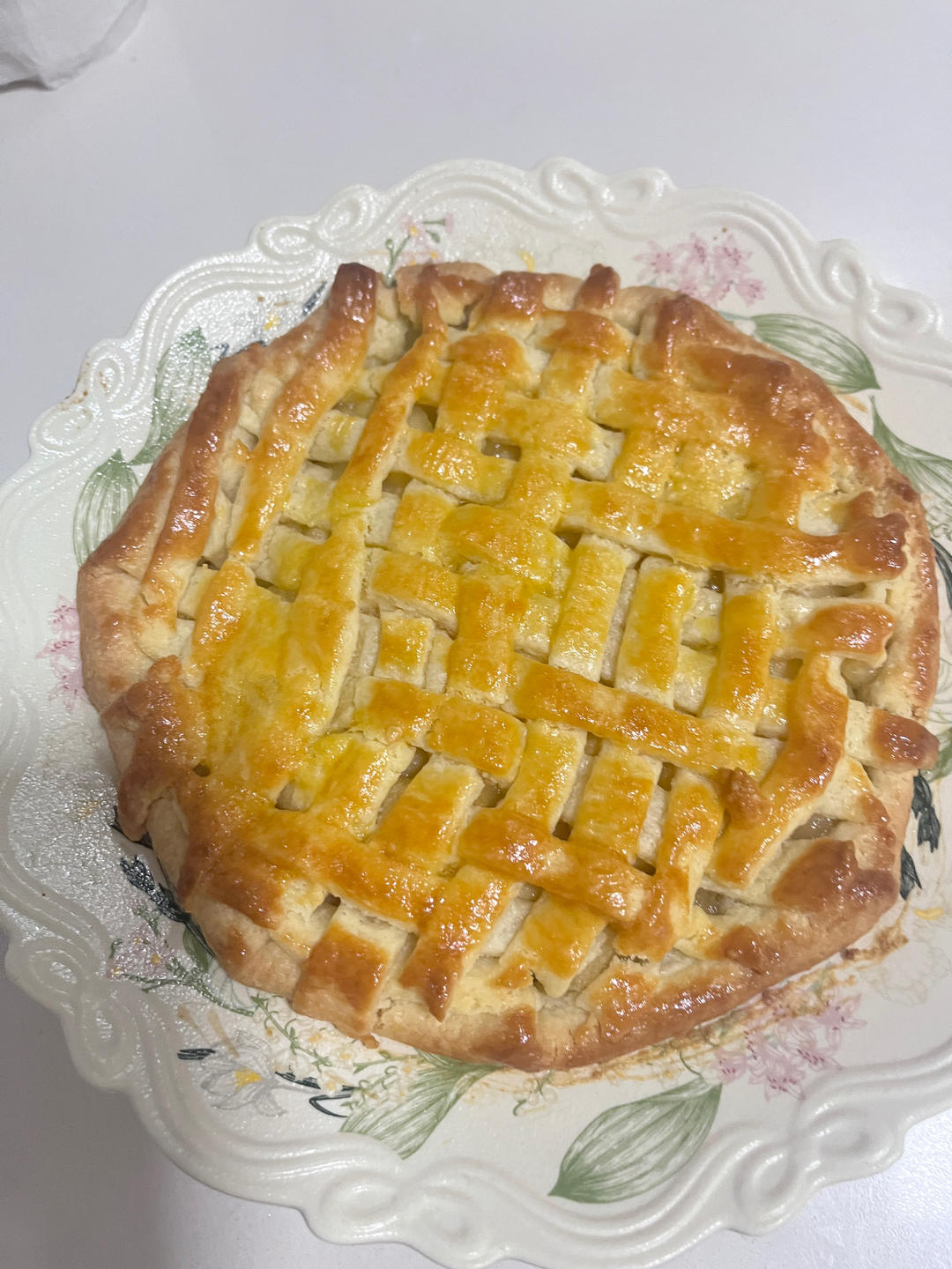 第一次做苹果派,没有模具用了一个盘子,味道很好。做法依据简简厨房,没有柠檬汁就没放,做得基础版。