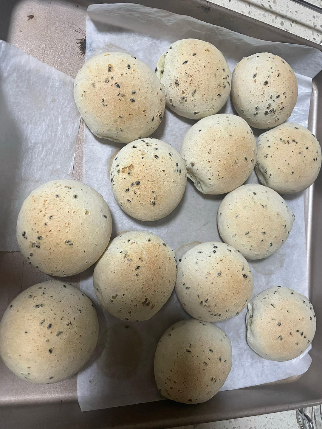 感觉是介于酥脆司康/面包/馒头之间的口感,挺神奇的。随意用家里的材料乱搭做了四种口味。黑芝麻粉的比较一般,可能家里的黑芝...