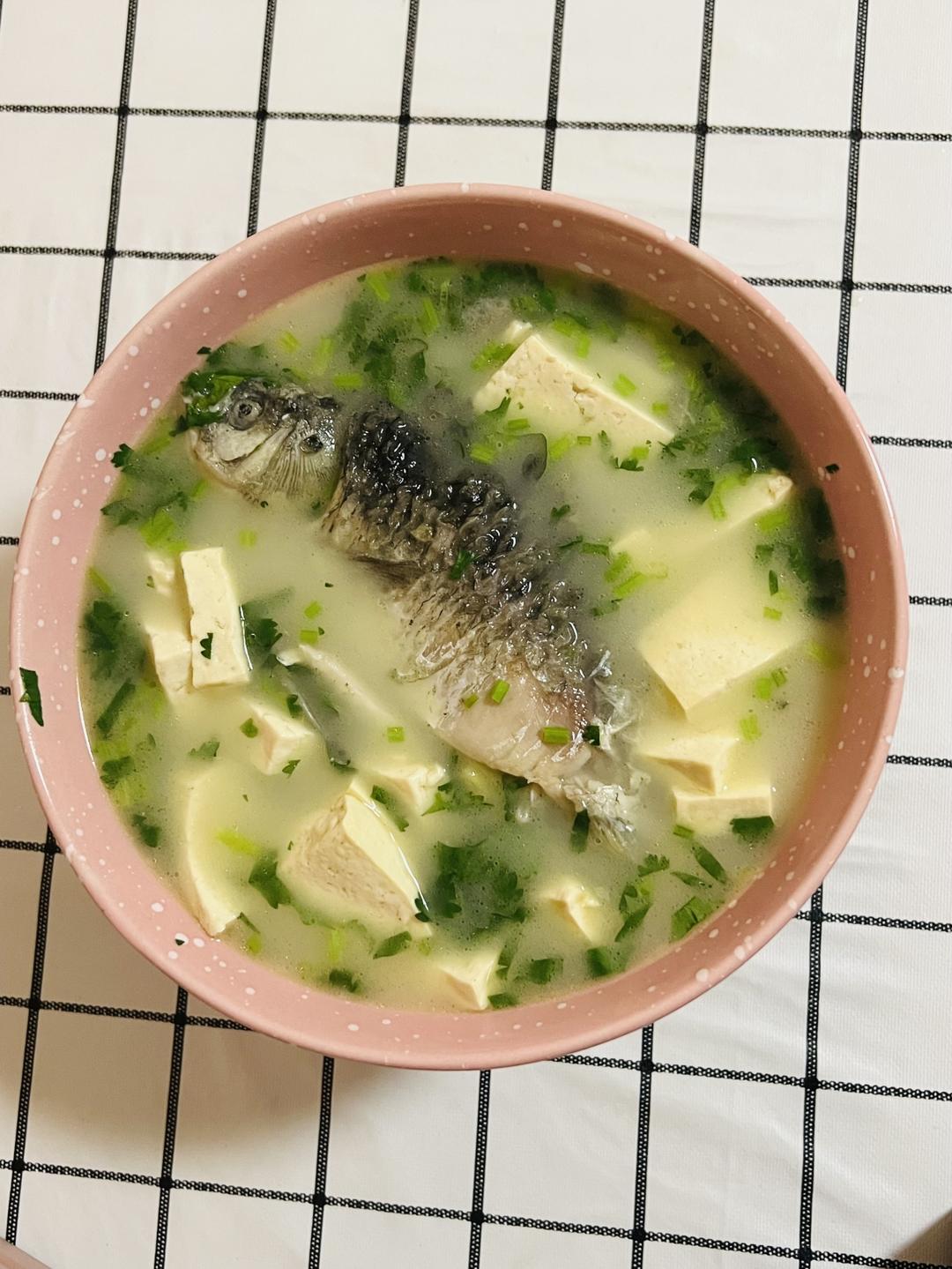 队友做的鲫鱼豆腐汤,贼鲜嫩美味➕买的凉皮