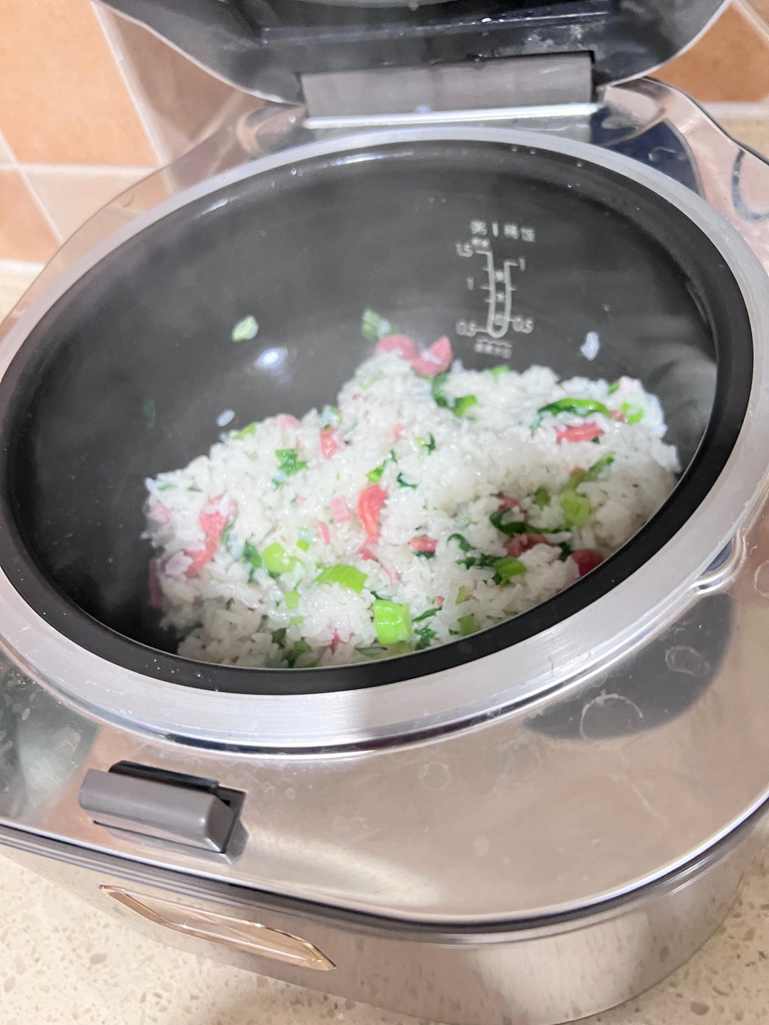 方子好,菜是碧绿的,外面菜饭菜是黄的,另外我放了点猪油代替菜油。
