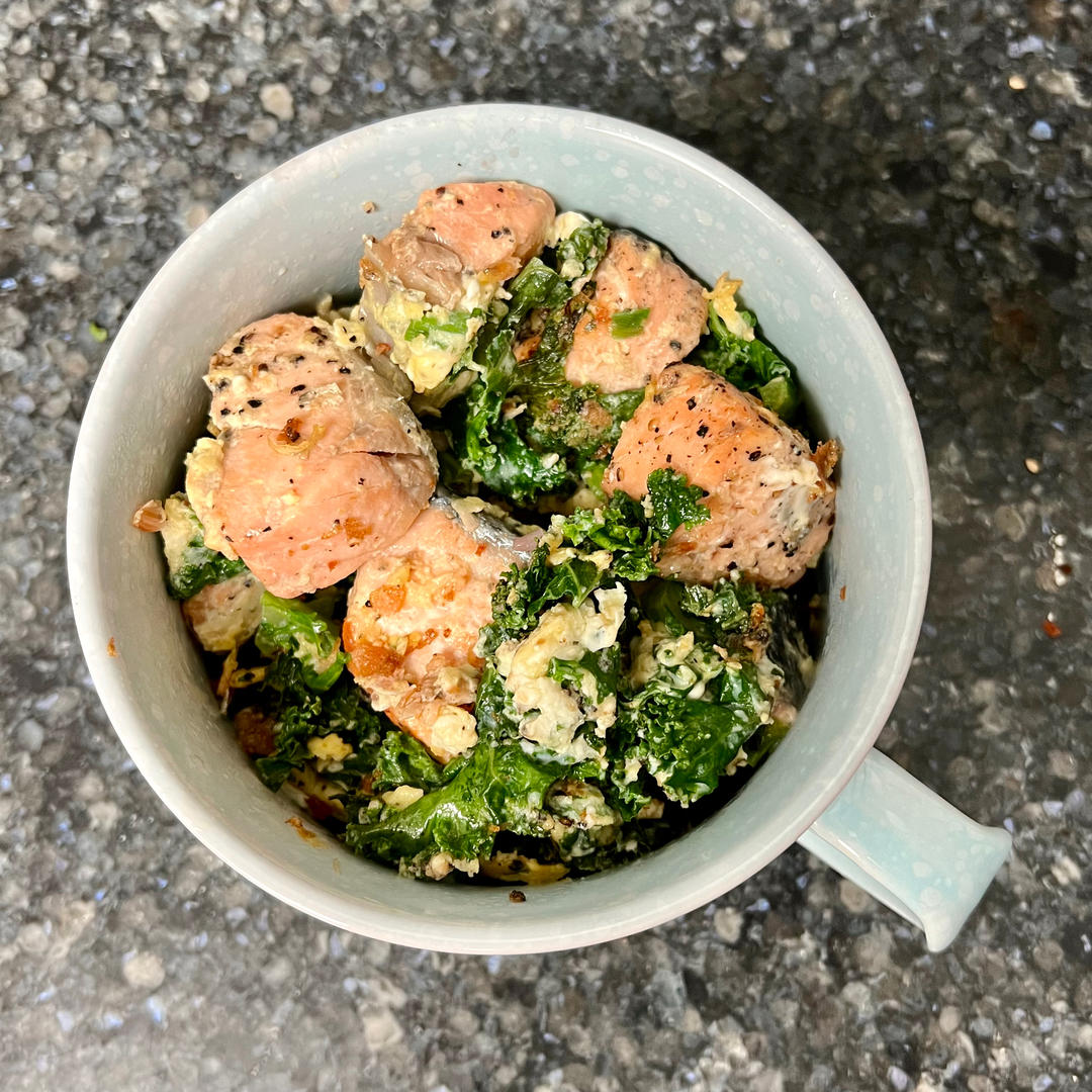 羽衣甘蓝三文鱼炒蛋~升级版的美国香椿炒蛋!
