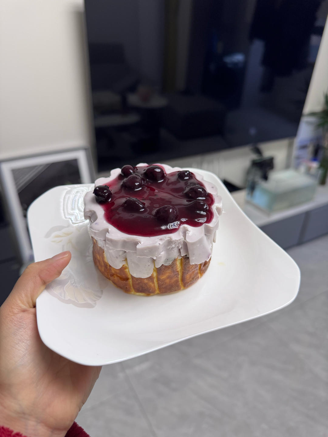 在巴斯克的基础上 奶酪糊里 加了新鲜熬制的蓝莓酱 与酸奶 topping...
