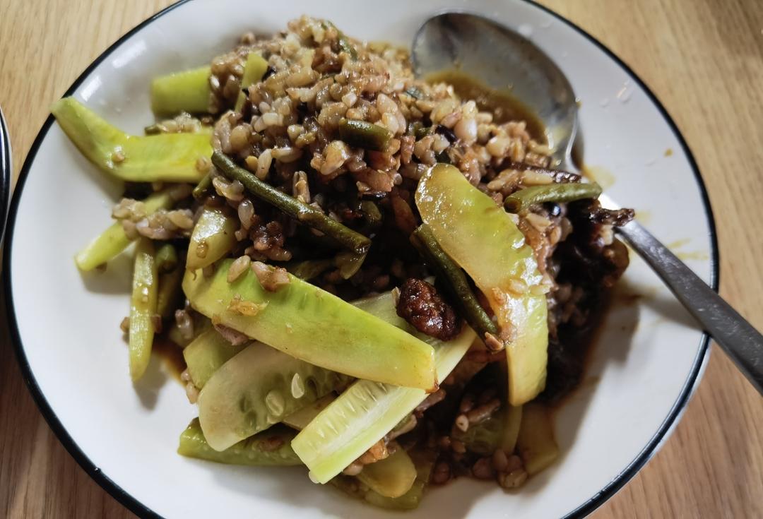 红烧肉黄瓜杂粮饭
