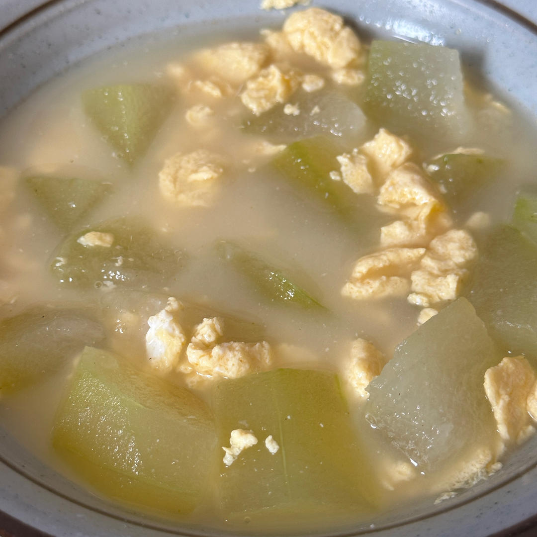 挺清新的,感觉如果把炒鸡蛋改成煎鸡蛋煮汤会更好喝。这次做的时候忘了提前烧水所以偷懒加了冷开...