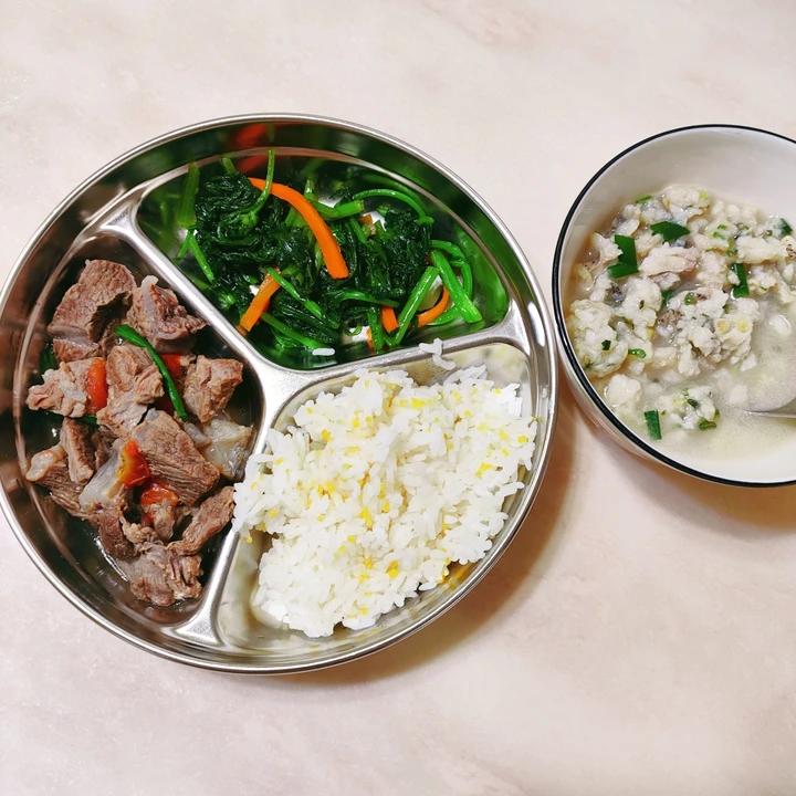 【土豆番茄炖牛腩】+【茼蒿菜炒萝卜】+【鮸鱼丸汤】