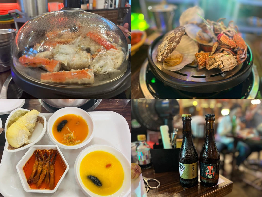 🍻一家隐藏在市场里的牛肉汤和烧饼,牛肉汤很好喝。海鲜自助有点儿白瞎了,品种很丰富,却只吃了榴莲、冰淇淋和蟹,开了两瓶啤酒...