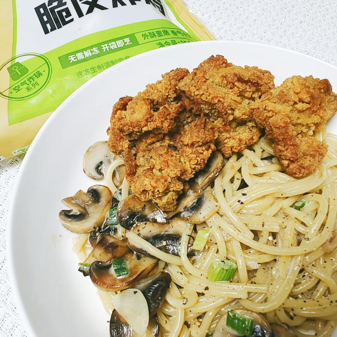 「炸鸡奶油意面双拼,香香香」