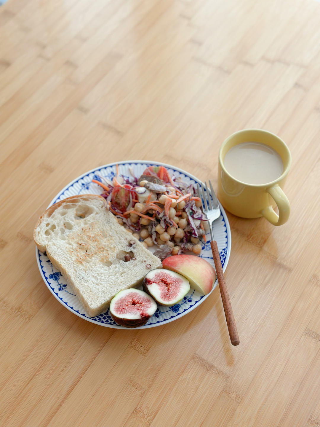 天然酵母吐司🍞/牛肉沙拉🥗/无花果/桃子/拿铁