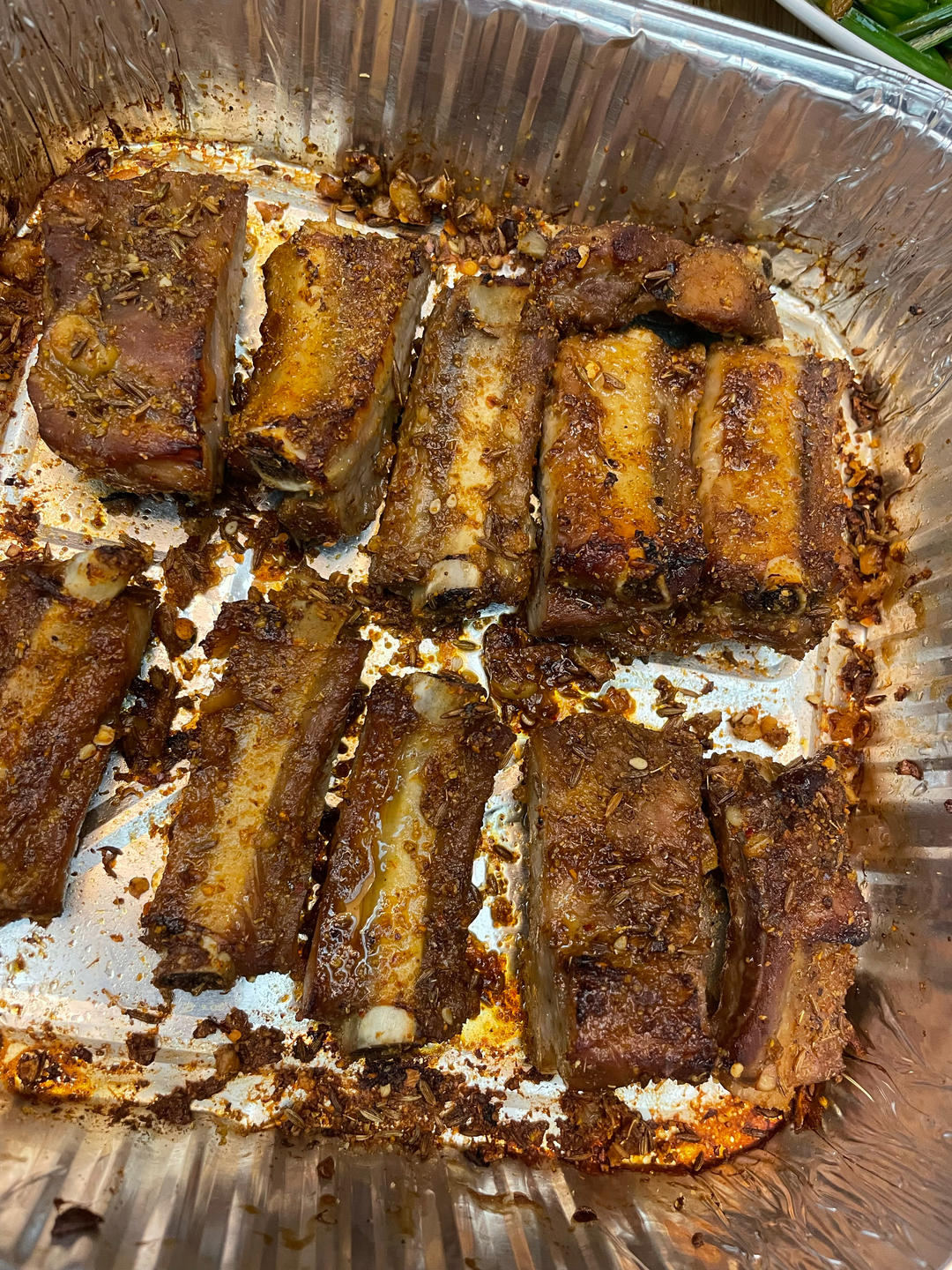 烤肋排 丝瓜炒榨菜 清炒韭菜苗