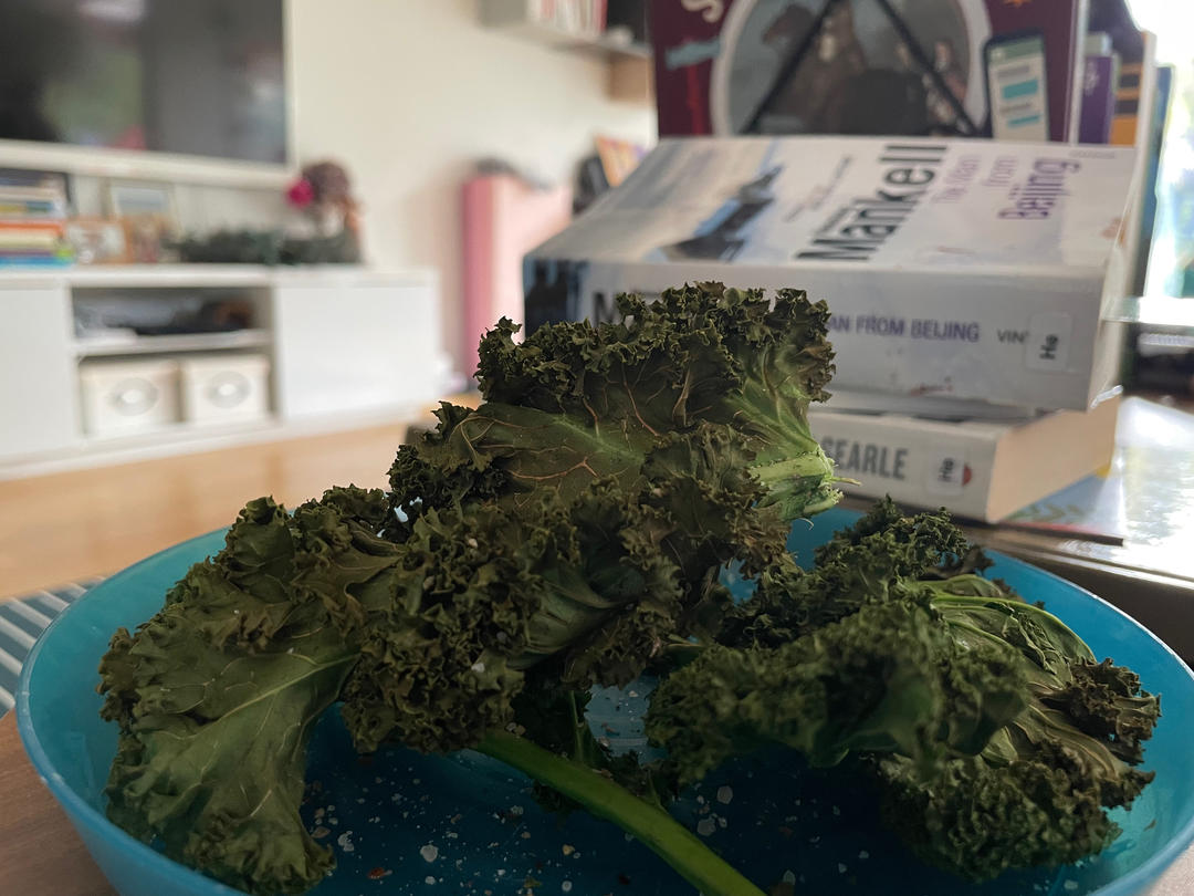 偷懒没把茎去掉就一整片烤 但是好处就是不怕在空气炸锅里叶子飞起来粘到加热管 几分钟就...