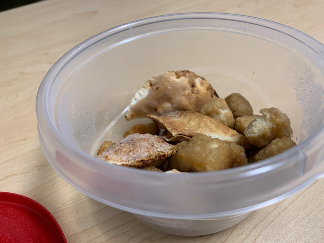 中午很简单的吃了肉松酥和鸡米花,课上吃脆脆的东西真的很尴尬😳