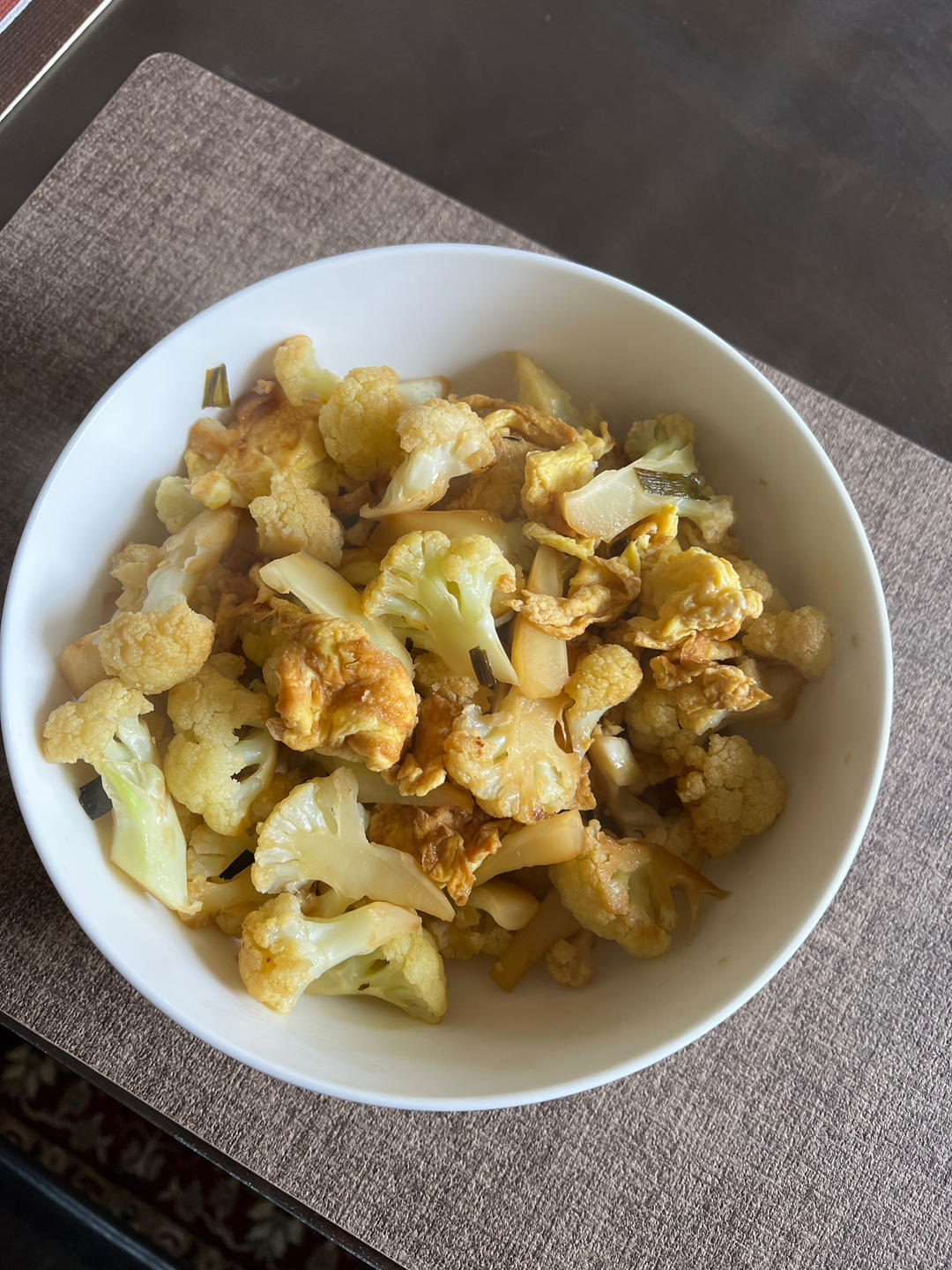 鸡蛋炒菜花配米饭